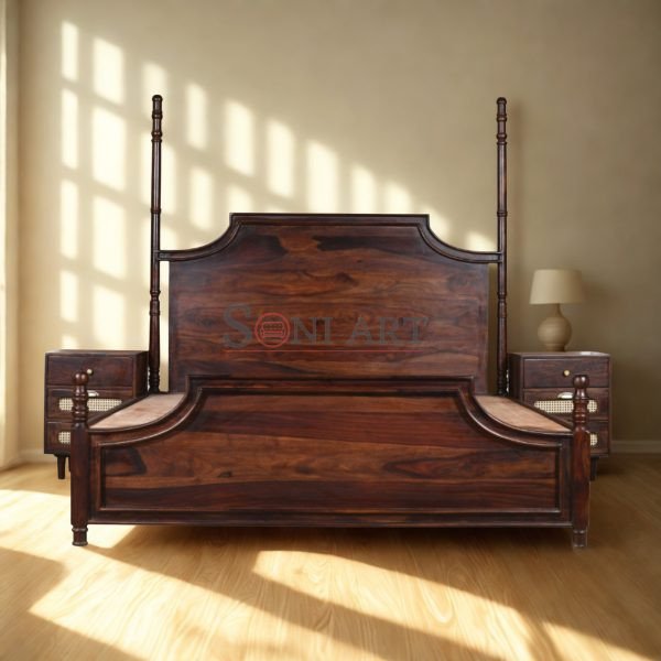 Stava Solid Sheeshem Wood Hand Carved Bed with High Back