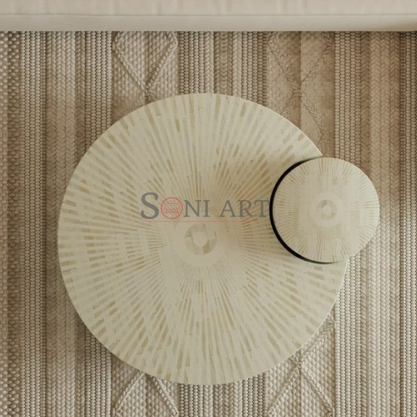 Original price was: ₹75,000.00.₹44,900.00Current price is: ₹44,900.00.Grid Bone Inlay Nesting Coffee Table Set – Black & Ivory Geometric Design (Set of 3)