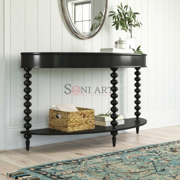 Aseen Black Demilune Console Table with Spindle Base Shelf | Entryway Console Table or Hall Table | Soni Art