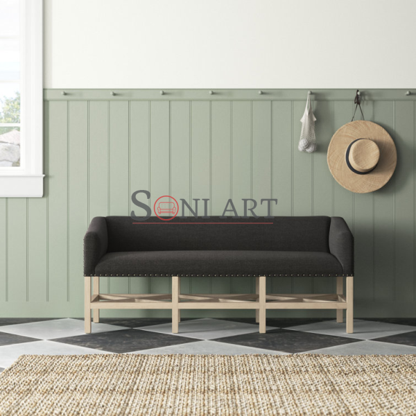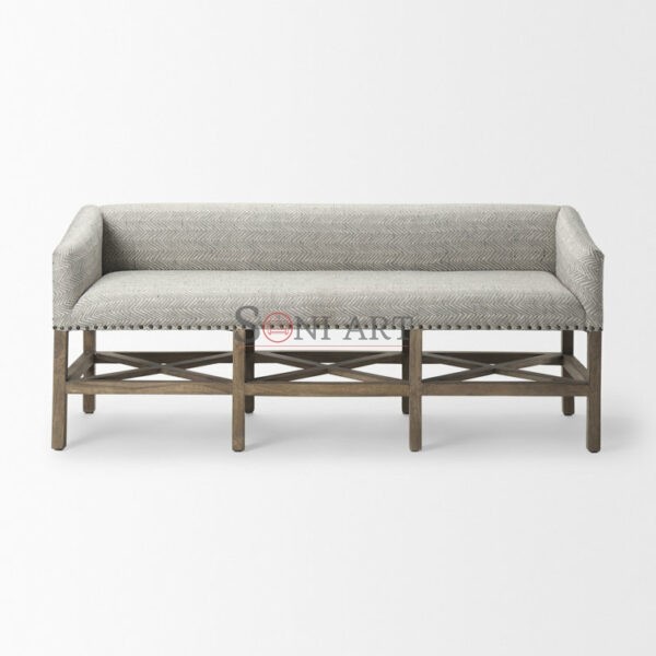 Dark Grey Forenza Upholstered Bench with Cross-Hatch Base Armrests | Entryway or Bedroom Seating | Soni Art