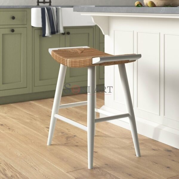 Sandy Backless Woven Counter Stool in Natural – Solid Wood | Soni Art