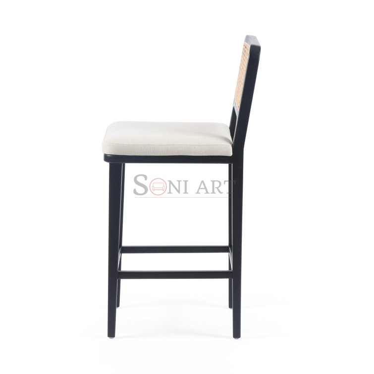 Albero Solid Wood Counter Stool with Cane Back Fabric Seat Soni Art