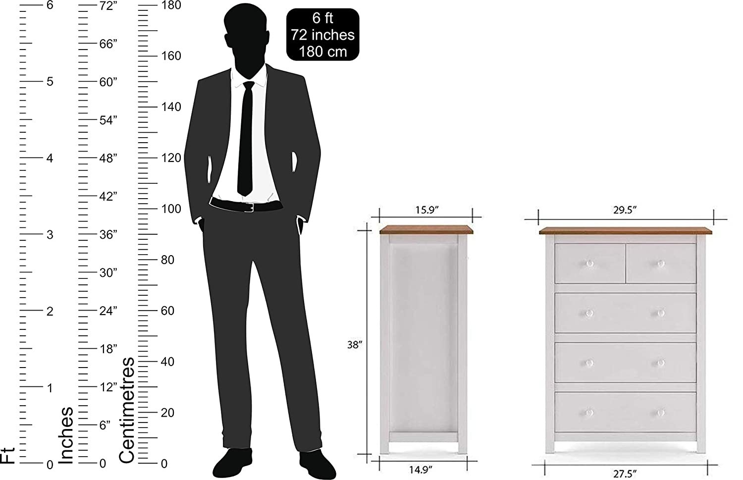 This stunning diamond-white finish is paired with a warm brown tabletop, creating a timeless look that blends effortlessly with any décor style. The wooden cabinet with drawers features a total of five spacious compartments—three large drawers for storing bulkier items like sweaters, linens, or documents, and two smaller drawers ideal for organizing innerwear, accessories, or other essentials.