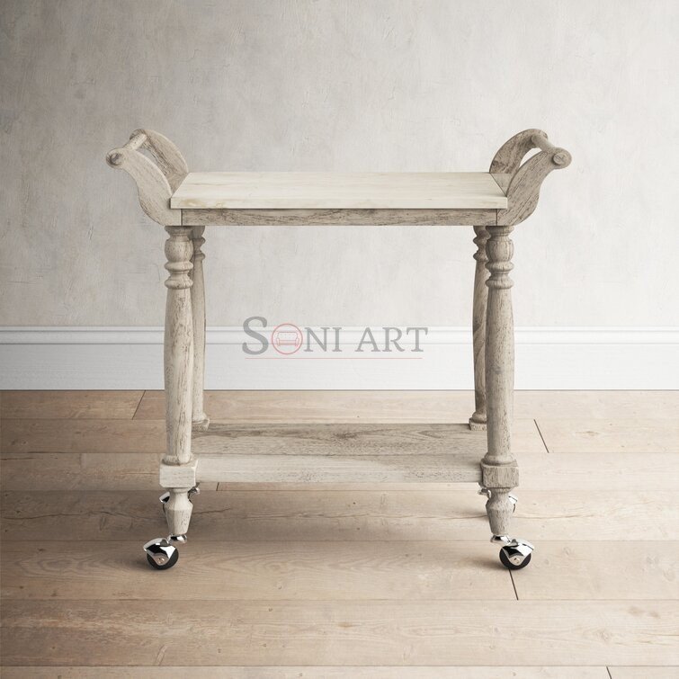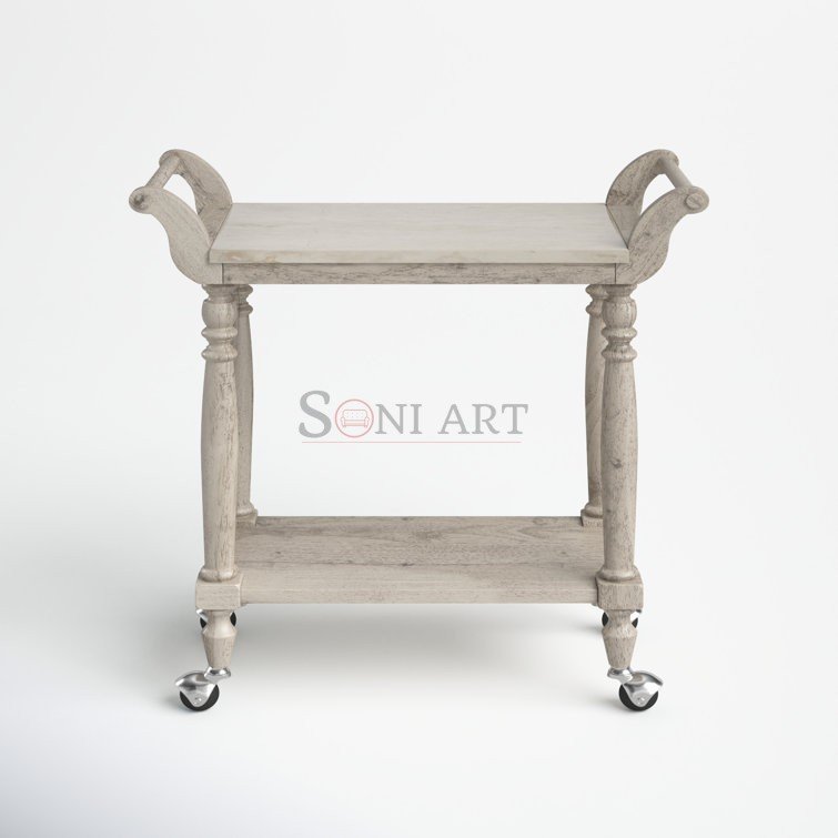 Alto Wood Bar Cart Rustic 2-Tier Serving Trolley with Shelves Wheels | Soni Art