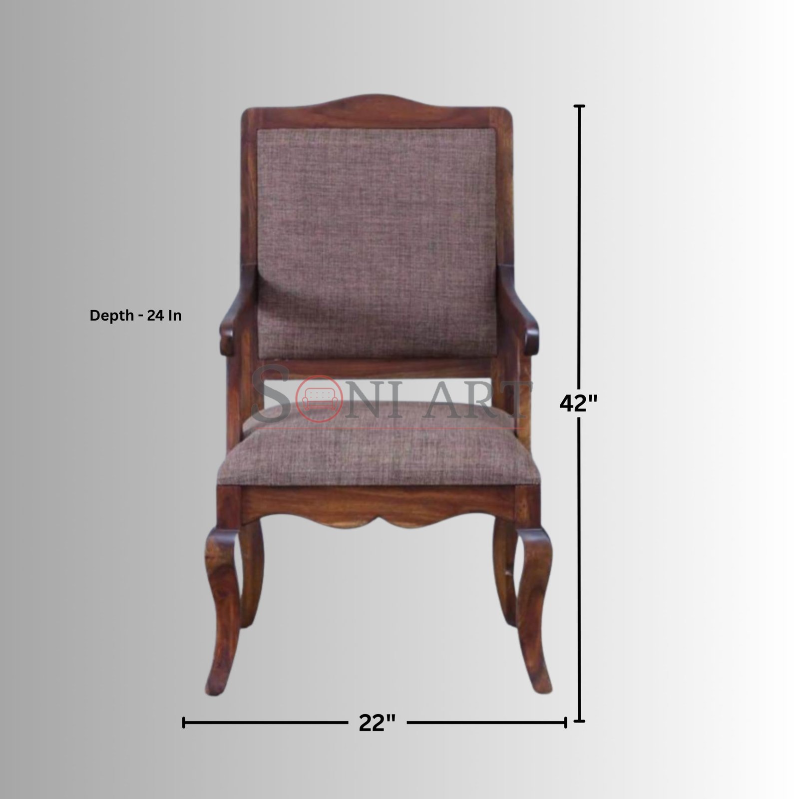 The rich brown finish enhances the natural grain patterns of the wood, while the artistic carvings on the backrest and legs give it a regal, timeless charm. Whether used as a wooden dining chair or a wooden accent chair in your living room, bedroom, or hallway, the Ankila Sheesham Wood Chair brings sophistication and warmth to any décor.