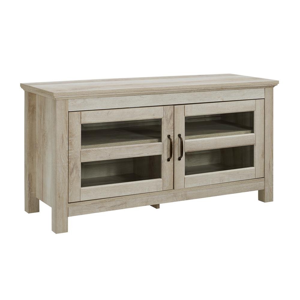 Featuring wide surface space for your television and two glass-front doors that reveal internal shelving, the wooden TV storage unit offers the perfect combination of style and function. It provides ample room for your media devices, books, and décor items while maintaining a sleek, uncluttered appearance.