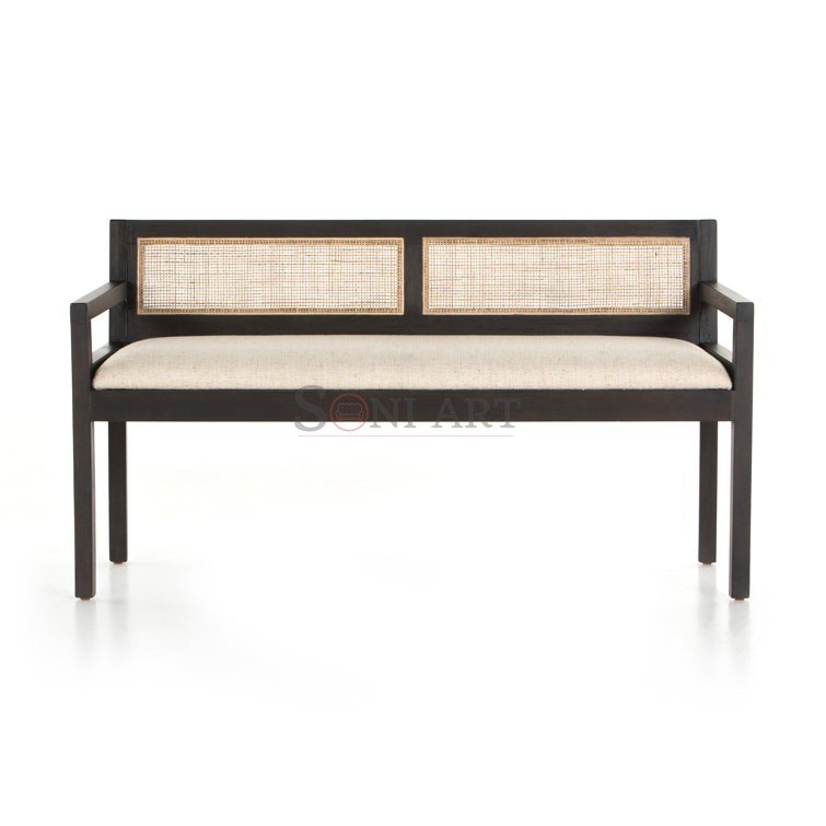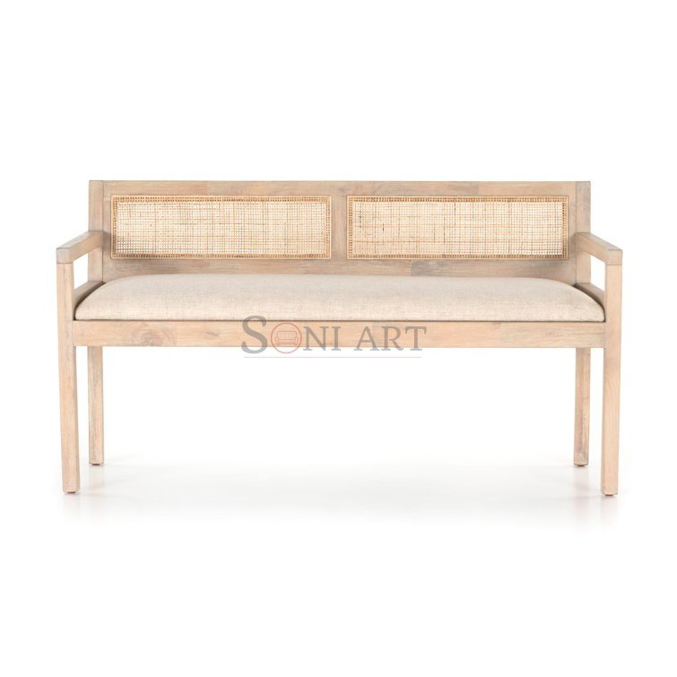 Ashley Solid Wood Natural Wood Cane Fitted Bench For Living Room Dining Room Hallway