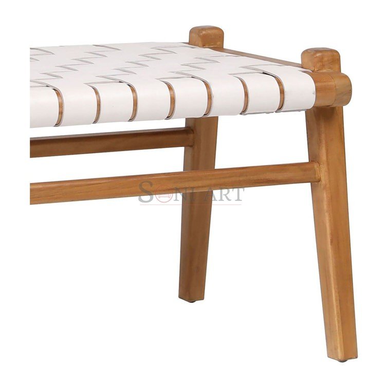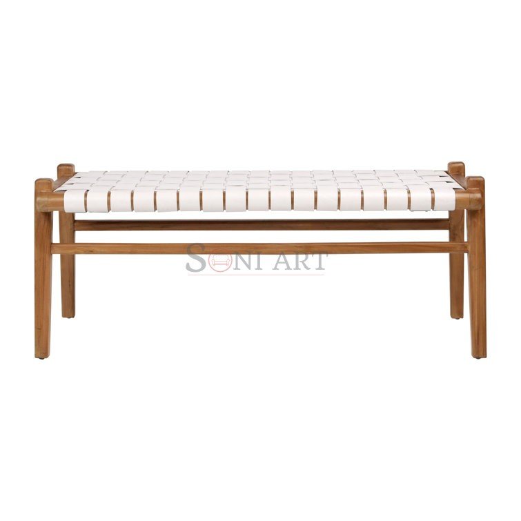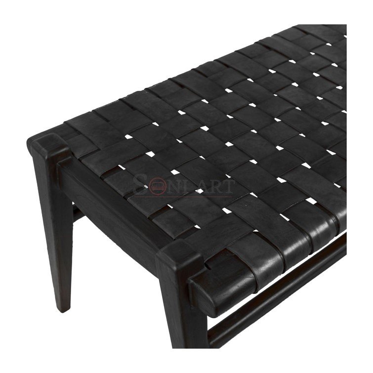 Introduce refined luxury into your living space with the Breda Genuine Leather Solid Wood Bedroom Bench by Soni Art. Thoughtfully handcrafted, this premium bench showcases the perfect harmony between full-grain genuine leather and solid teak wood (Sagwan), creating a piece that is as durable as it is visually striking. The hand-woven leather strap design wraps seamlessly across the sturdy wooden frame, adding depth, texture, and artisanal character to your interiors.
