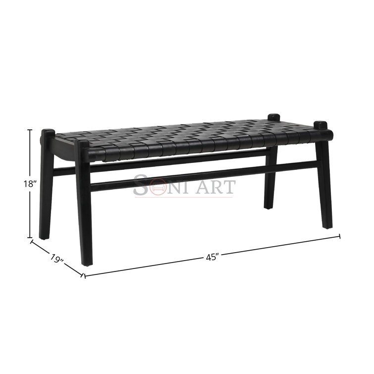 Breda Genuine Leather Bench in Solid Wood – 45″ Modern Entryway Bedroom Bench | Soni Art