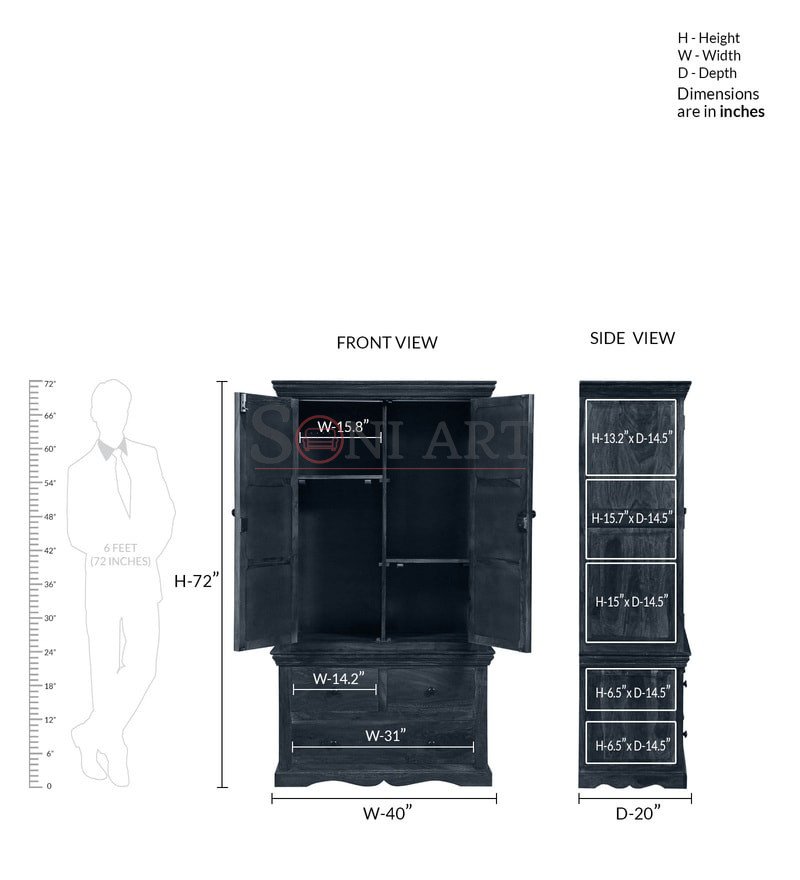 The Cardona Wardrobe isn’t just a feast for the eyes; it’s a powerhouse of storage. With two expansive doors and three large drawers, it provides a home for all your essentials. Whether it’s clothes, accessories, or other household items, this sheesham wood wardrobe keeps everything tidy and accessible.