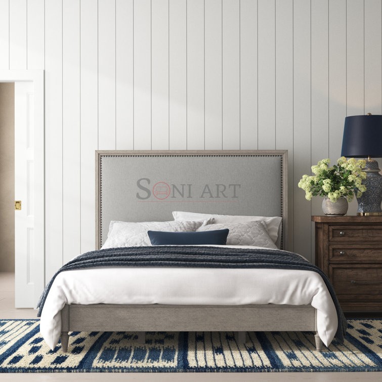 The generously padded panel headboard is upholstered in a soft gray fabric, creating a comfortable and supportive surface for sitting up in bed. Whether you’re reading, watching television, or enjoying a quiet morning, the upholstered headboard adds both visual warmth and practical comfort. The neutral gray tone blends seamlessly with modern, transitional, and classic bedroom interiors.