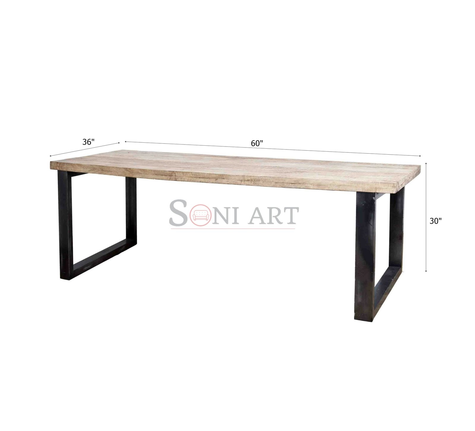 The base is crafted from wrought iron pipes (3×1.5″), finished with a black powder coating for enhanced durability and a sleek, modern look. The robust combination of solid wood and iron ensures stability and longevity, making it an excellent choice for everyday use or special occasions.