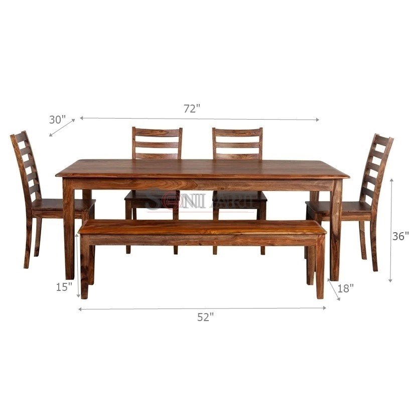 Ferrol Solid Sheesham Wood Dining Set of 6 Seater with Bench and 4 Chairs