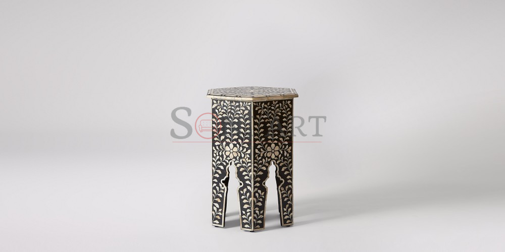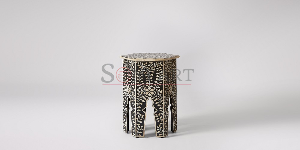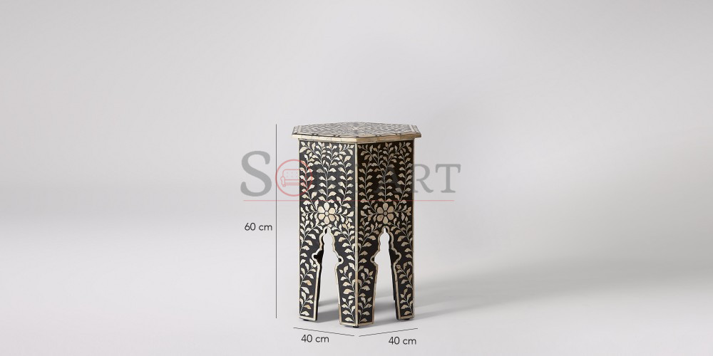 Enhance your interior with timeless elegance and artistic craftsmanship through the Flowery Hexagonal Bone Inlay Side Table by Soni Art. Thoughtfully handcrafted using premium solid wood and genuine natural bone inlay, this designer wooden accent table is a true celebration of traditional artistry blended with refined design sensibilities.