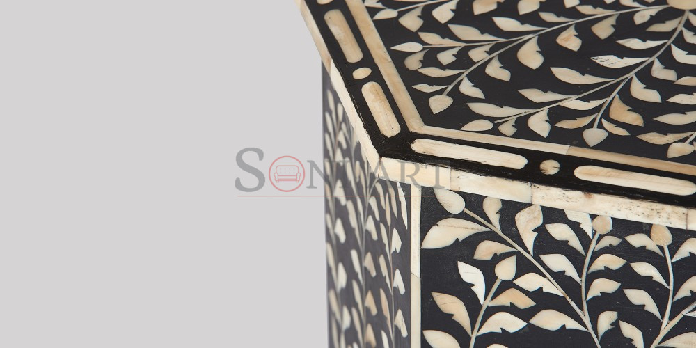Durable, sturdy, and visually captivating, the Flowery Hexagonal Bone Inlay Side Table is more than a functional piece—it’s a statement of taste, heritage, and artisanal excellence, designed to elevate everyday living with timeless beauty.