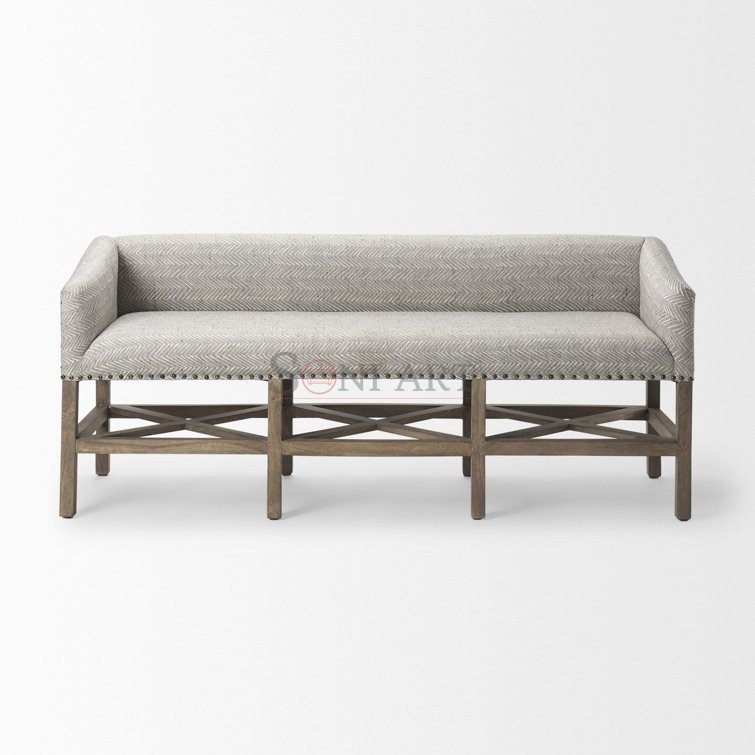Forenza Upholstered Bench with Cross-Hatch Base Armrests | Entryway or Bedroom Seating | Soni Art