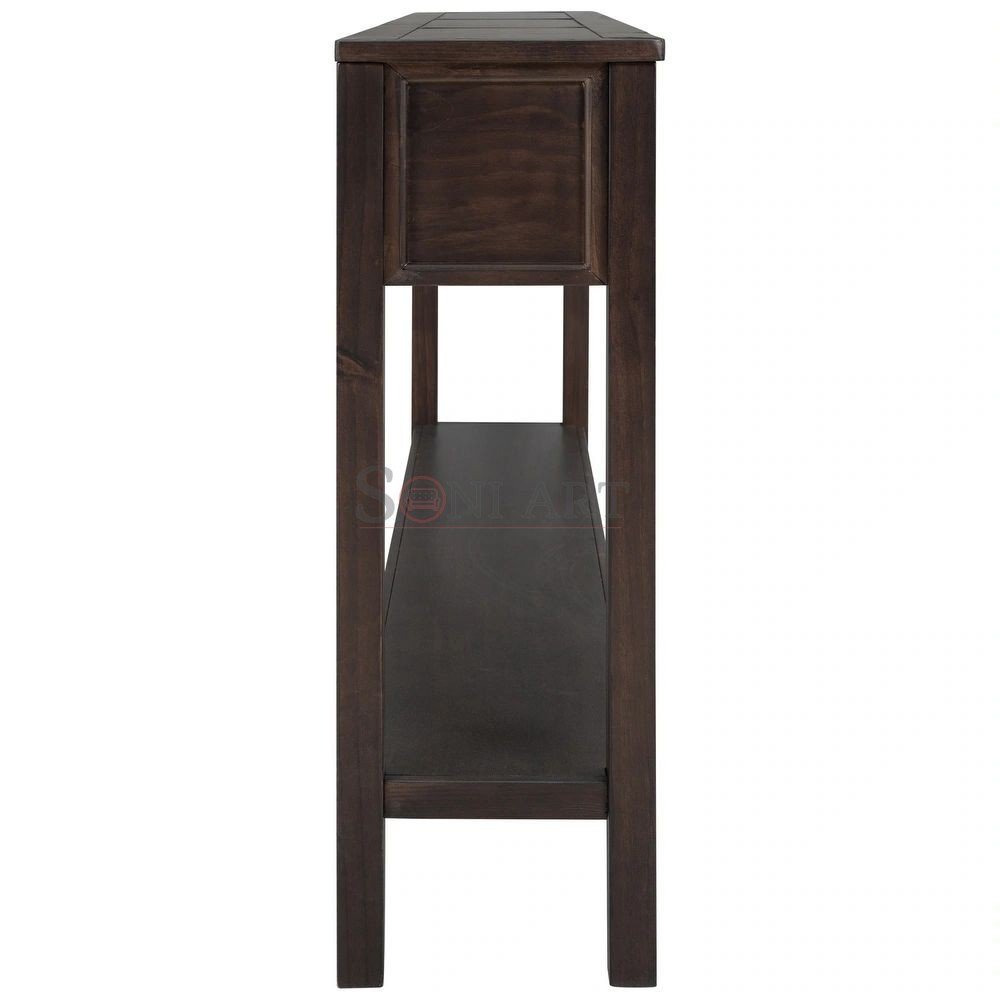 The wide tabletop provides generous display space for lamps, artwork, photo frames, or floral arrangements, while the open bottom shelf offers additional room for books, baskets, or decorative accents. Fully finished at the back, this console table can be placed against a wall or used as a room divider.