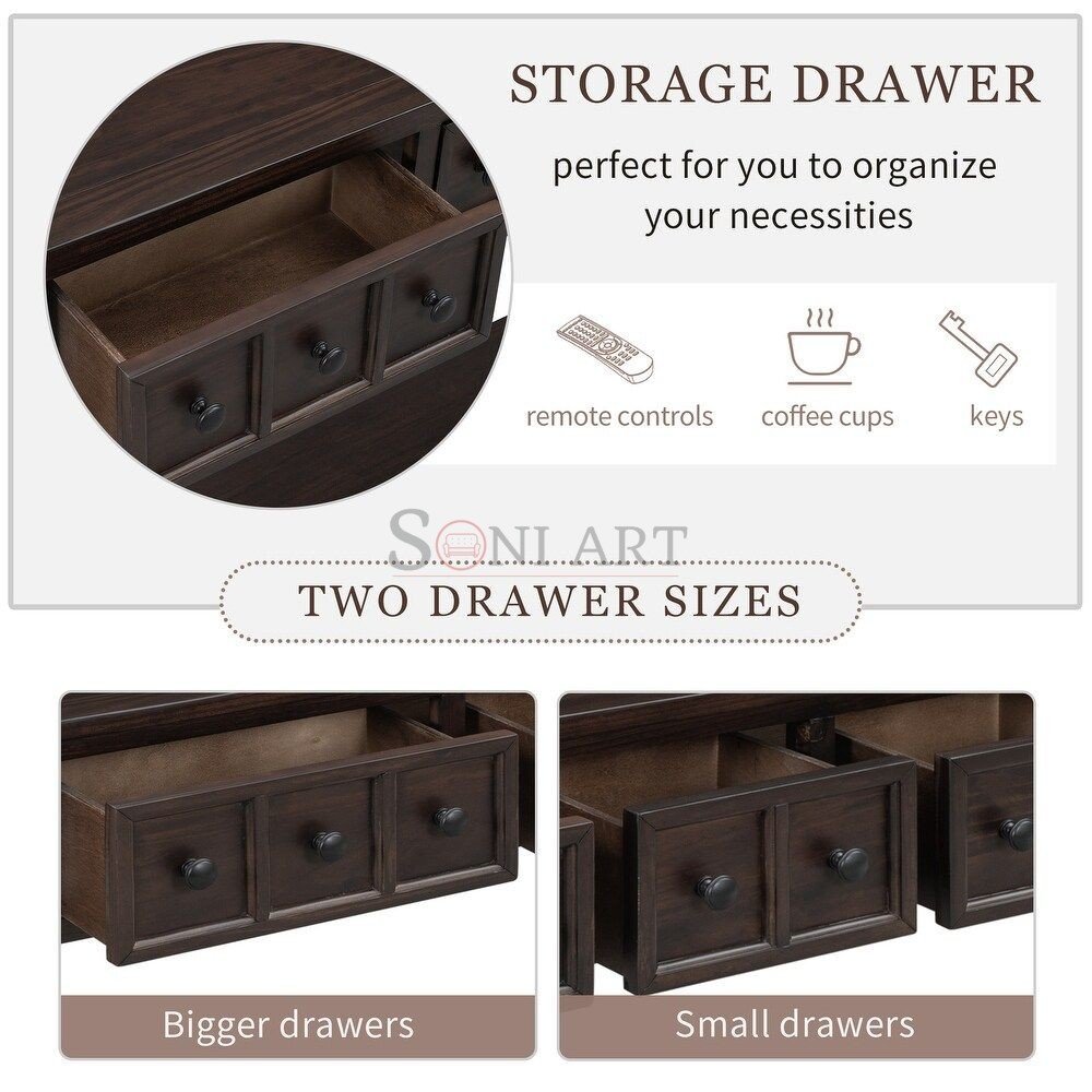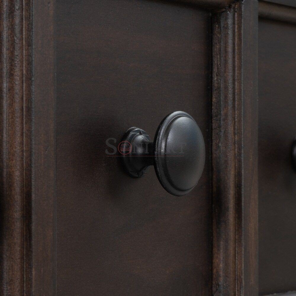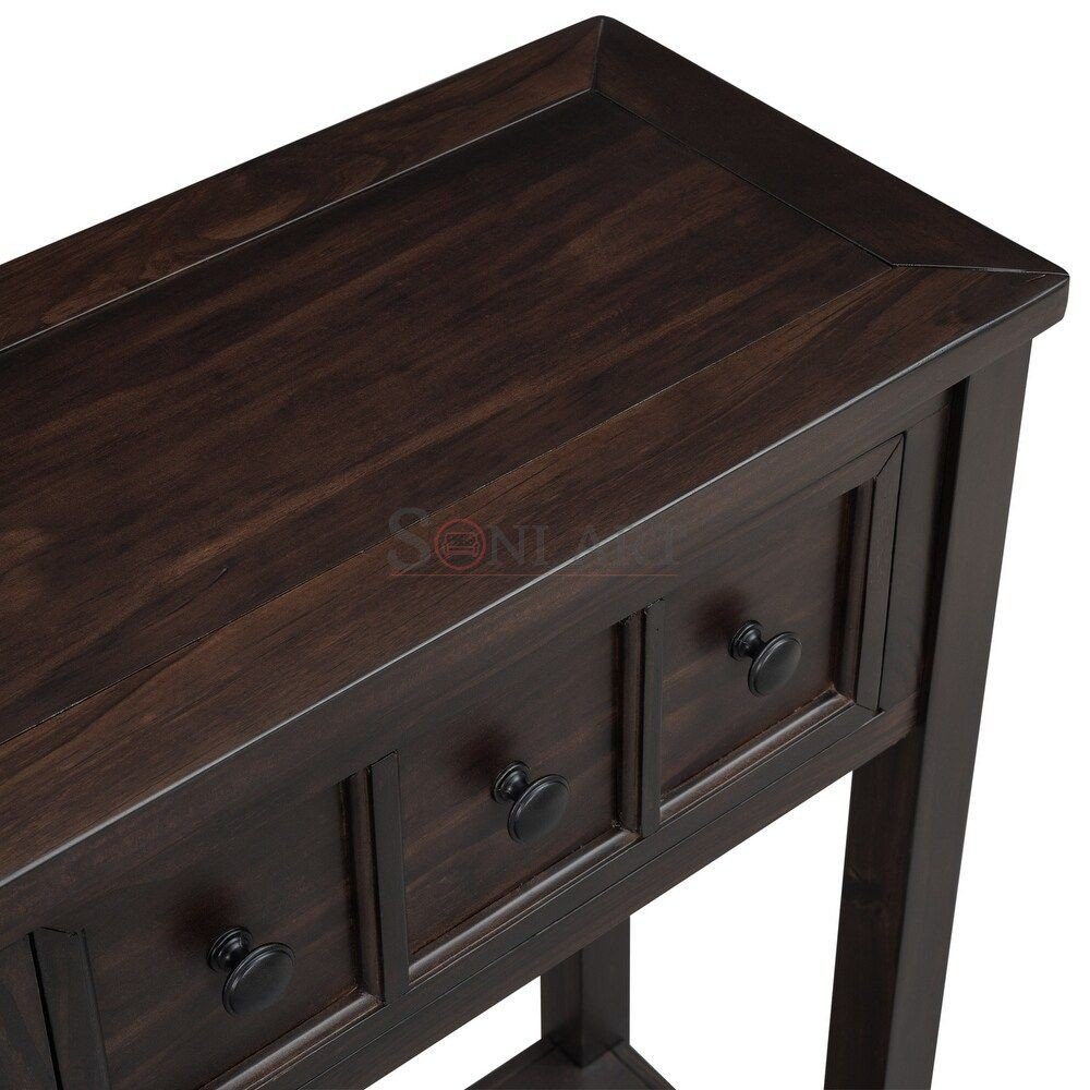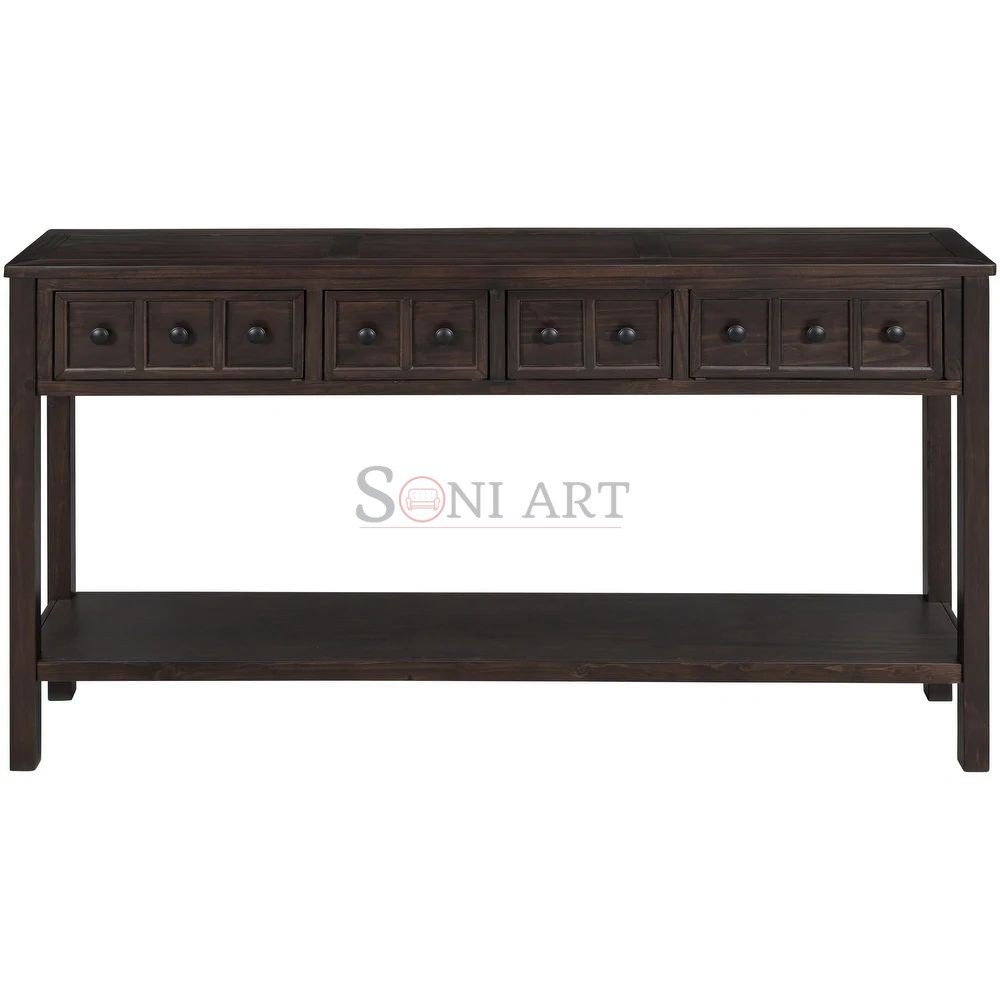 Designed for everyday practicality, the solid wood console includes four drawers in two different sizes—two smaller drawers for essentials like keys, remotes, and chargers, and two larger drawers for documents, dining accessories, or miscellaneous storage. Each drawer glides smoothly and is finished with uniquely patterned knobs that add character and visual interest.