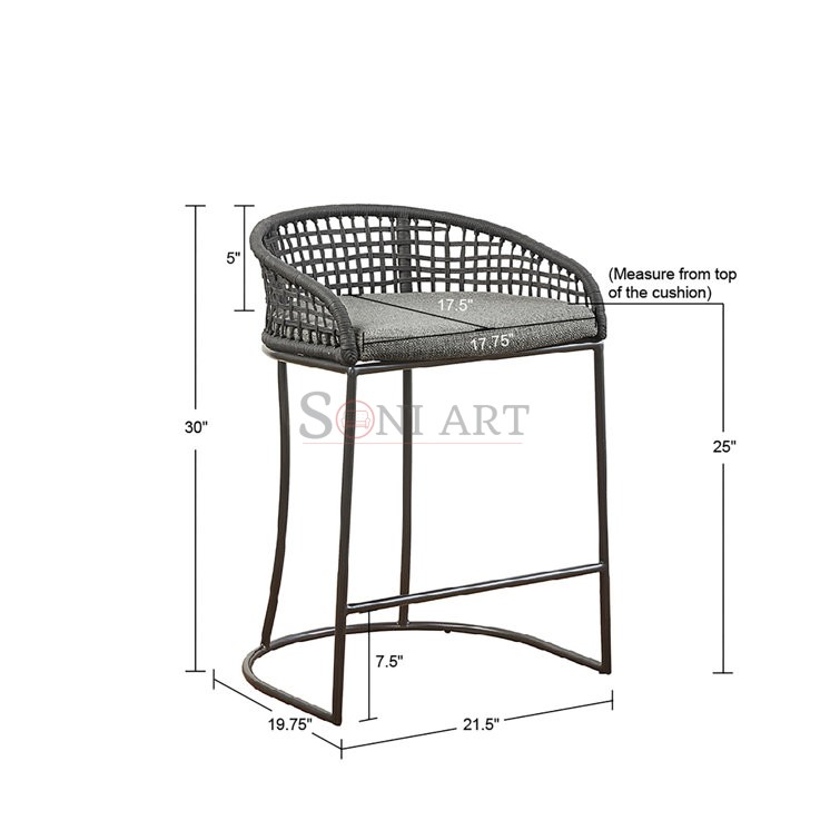 Hermosa 25″ Woven Low Back Counter Stool with Iron Frame – Coastal Style | Soni Art