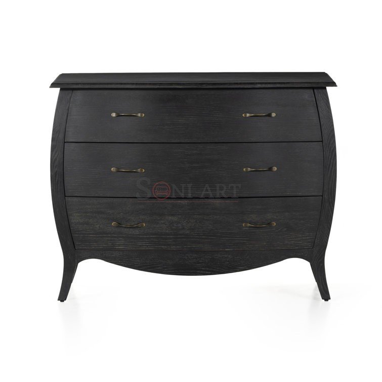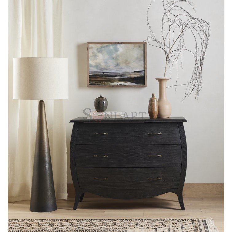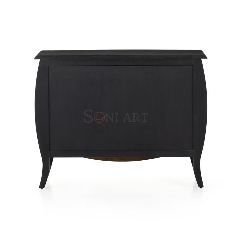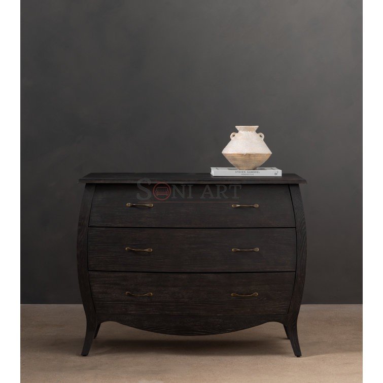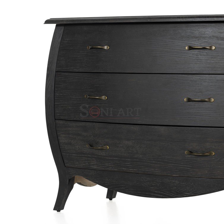 Add timeless European elegance to your bedroom with the Hextor Three Drawer Dresser by Soni Art. Inspired by classic antique furniture, this beautifully handcrafted dresser blends old-world charm with modern functionality, making it a perfect statement piece for luxury interiors. Crafted from premium solid mango wood and finished in a rich distressed black tone, this wooden dresser exudes character, depth, and vintage appeal.