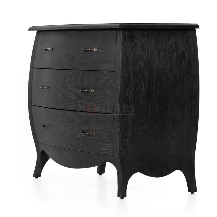 Hextor Three Drawer Dresser in Distressed Black – European Antique Style | Soni Art