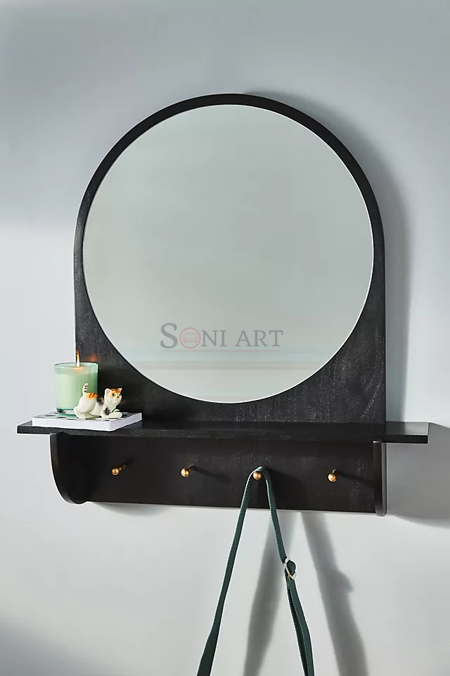 Isen Solid Wooden Frame Hook Rack Mirror – Wall Mounted Organizer with Shelf | Soni Art
