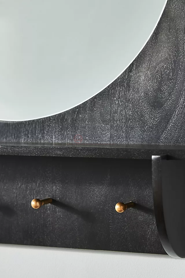 Equipped with durable cast brass hooks, this mirror doubles as a convenient coat rack or key holder, helping you keep essentials like bags, hats, and scarves organized. A built-in shelf provides additional storage or display space for decorative accents, plants, or small essentials—making it as functional as it is stylish.