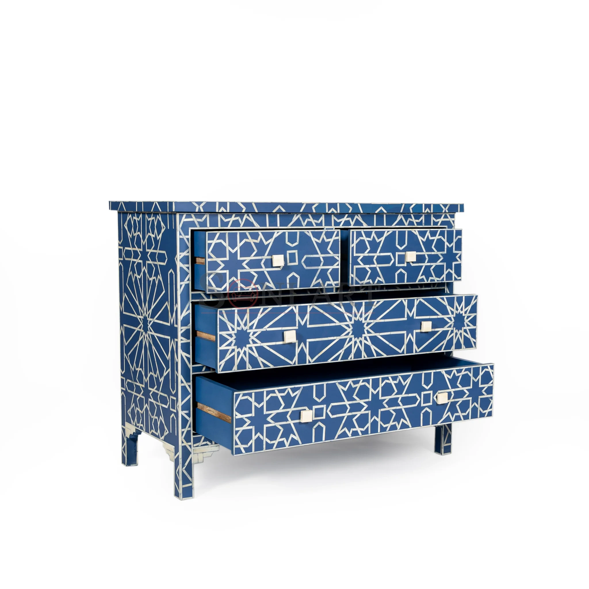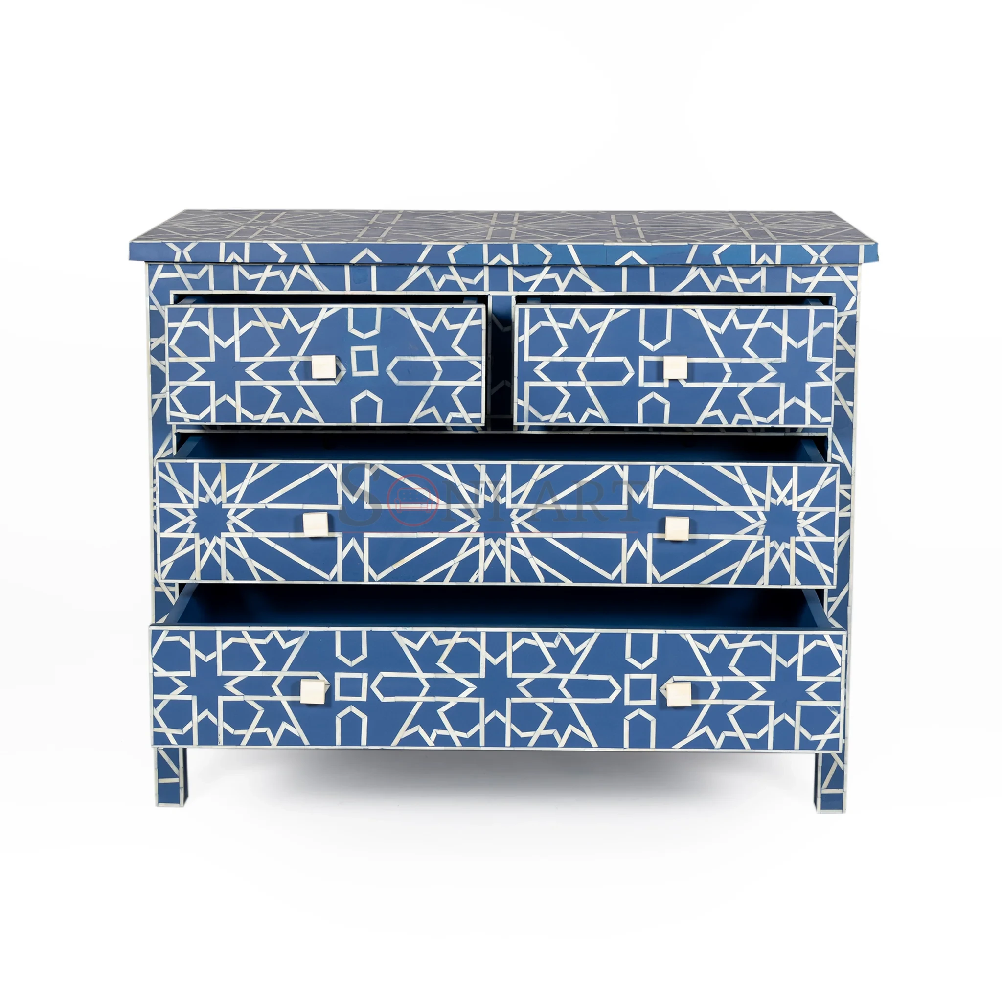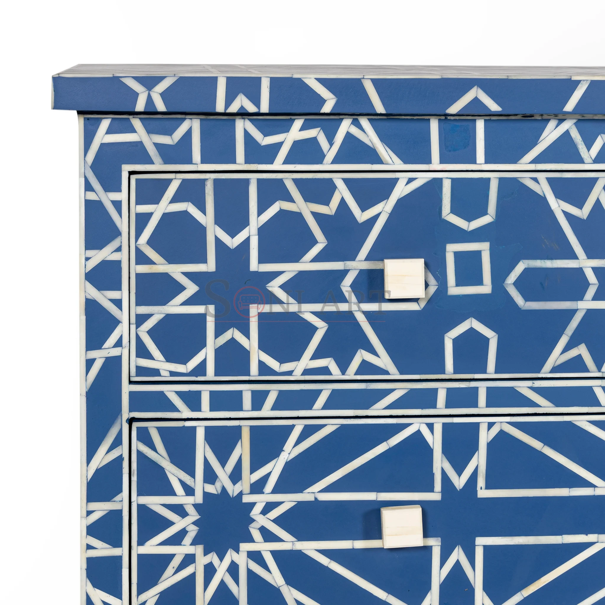 Jaipur Azure Star Blue Bone Inlay Chest of Drawers – Geometric Design