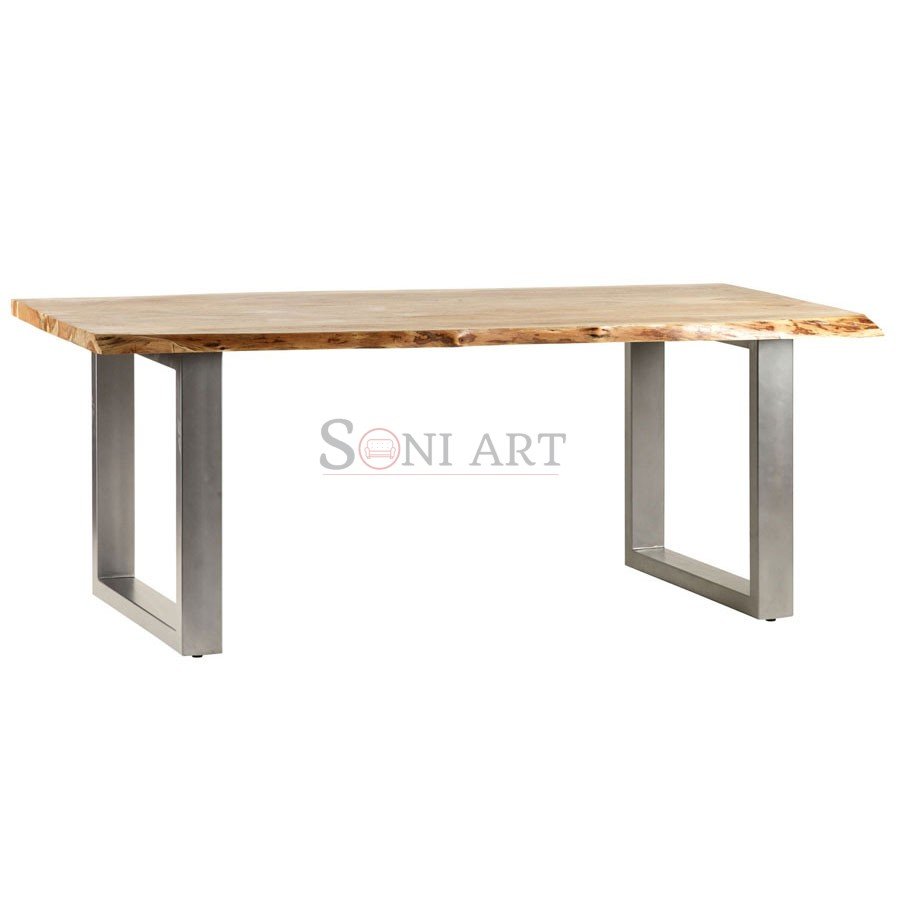 - Design: Industrial-style metal legs paired with raw-edged wooden top
