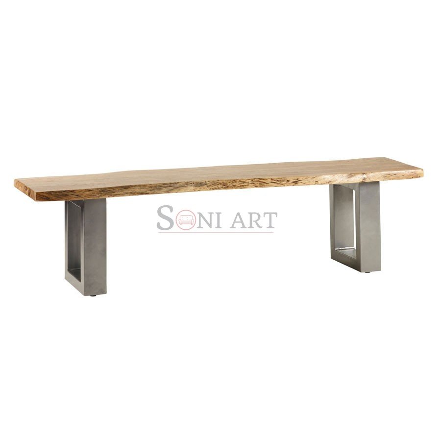 The table and bench rest on sturdy metal bases, offering a perfect balance of rustic warmth and modern durability. The sleek metal legs provide unwavering support to the solid wood top, ensuring long-lasting stability while adding a contemporary flair to the overall design. The natural grain patterns and rich honey-brown tones of acacia wood bring depth and sophistication to your home’s décor, creating an inviting space for family gatherings or dinner with friends.