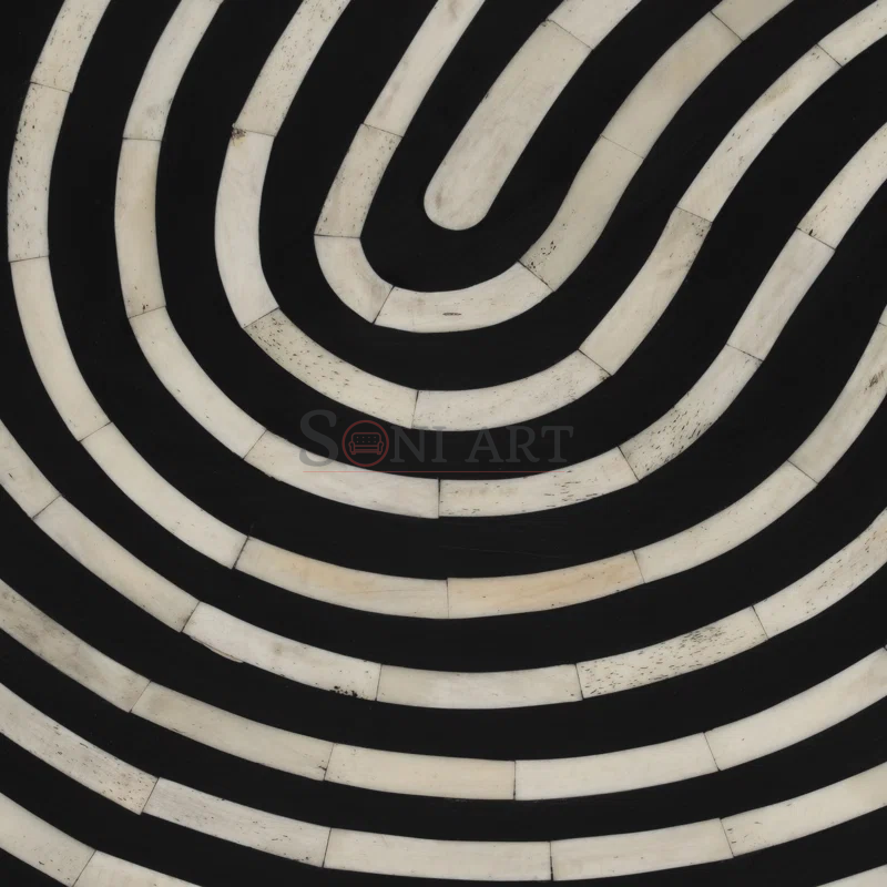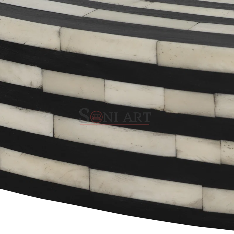 Introduce artistic elegance and bold craftsmanship into your living space with the Mesm Bone Inlay Round Coffee Table by Soni Art—a striking fusion of traditional artistry and contemporary luxury. Expertly handcrafted by skilled Indian artisans, this designer coffee table features a meticulously detailed bone inlay pattern on the tabletop, creating a mesmerizing visual rhythm that instantly draws attention and elevates your interiors.