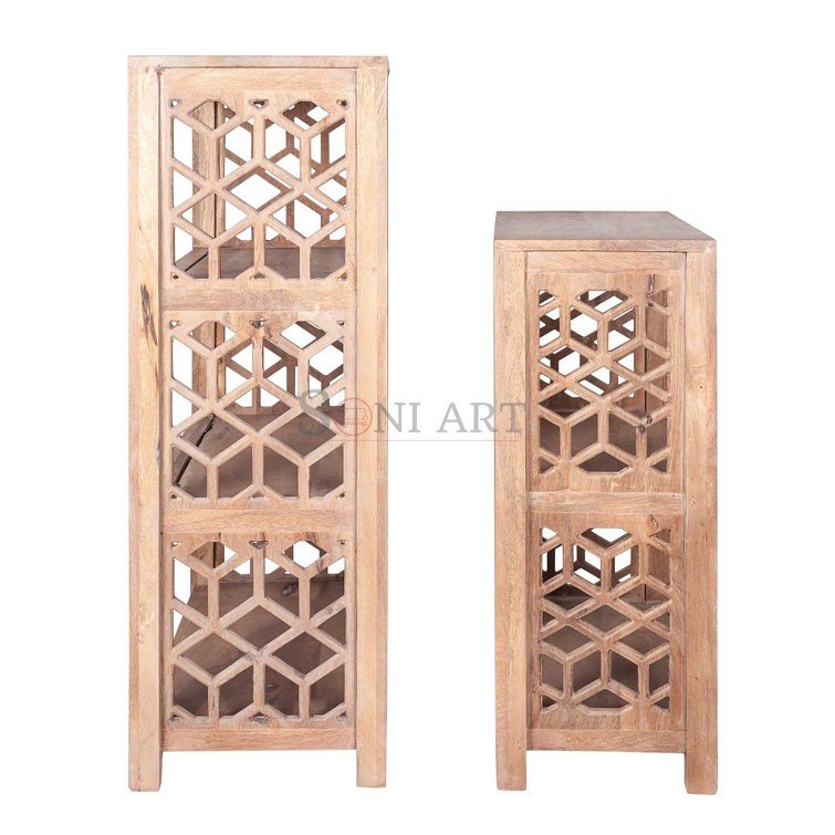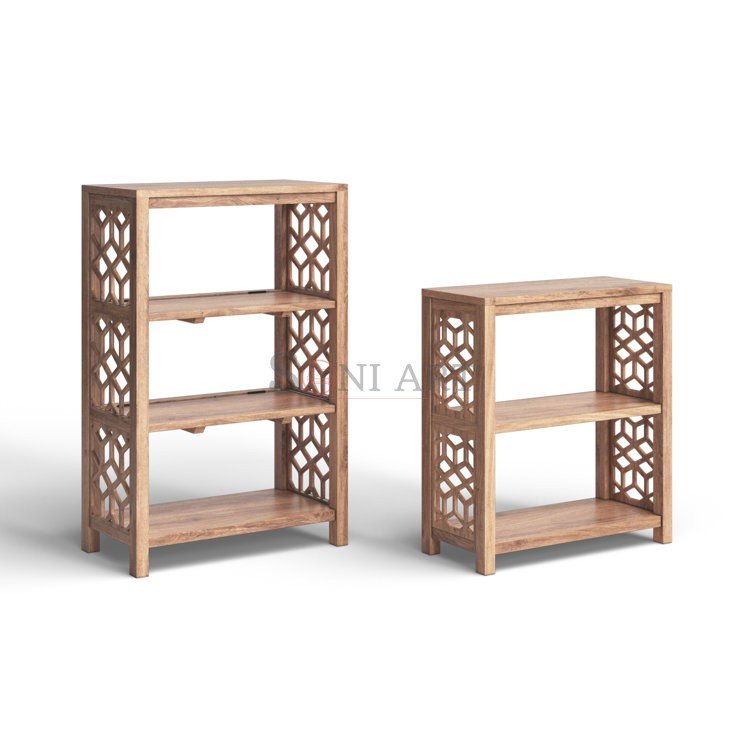 Beyond storage, this wooden bookcase set enhances the overall personality and warmth of your interiors. The clean lines, geometric cut-outs, and natural aesthetic add a sculptural element that feels artistic yet functional.