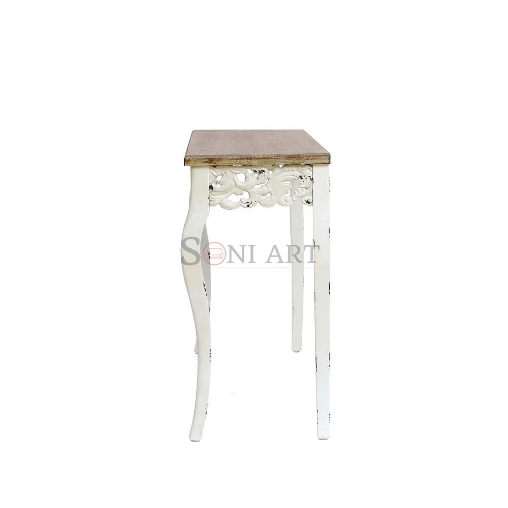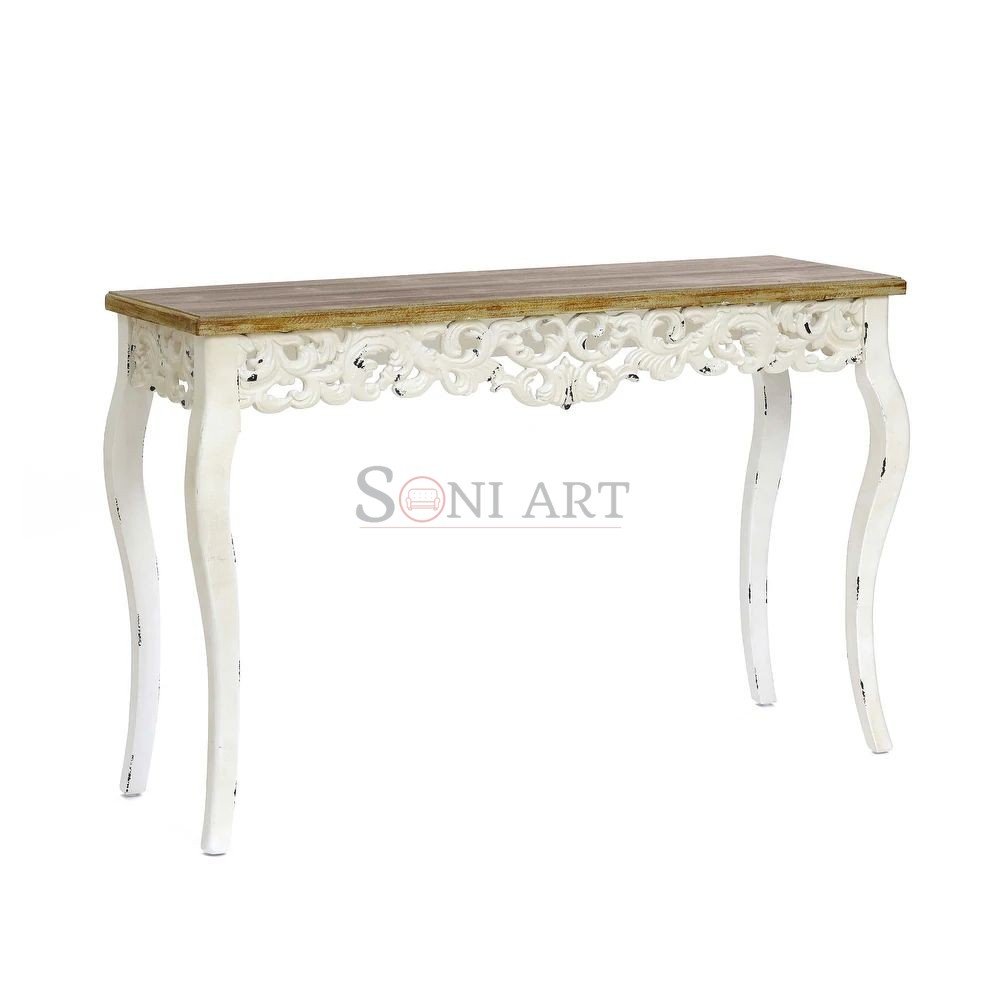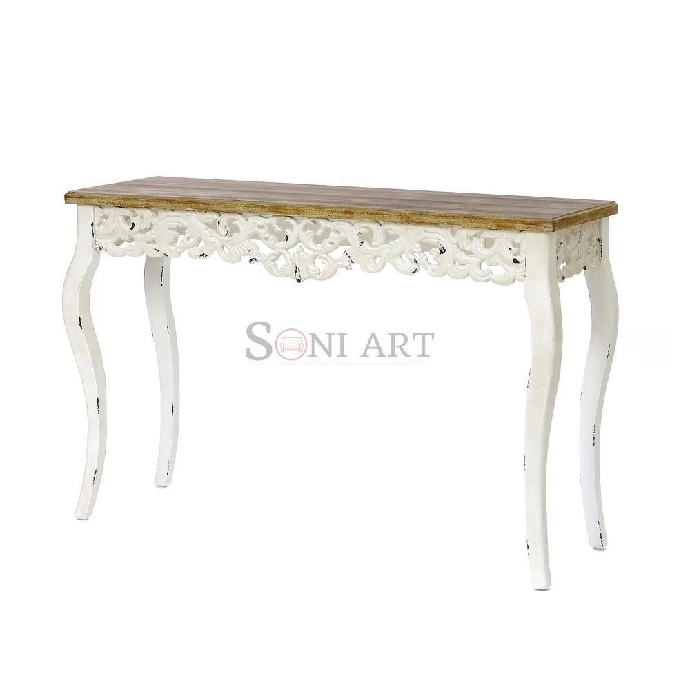 Myken Carved Console Table Distressed Off White Natural Finish Victorian Entryway Table
