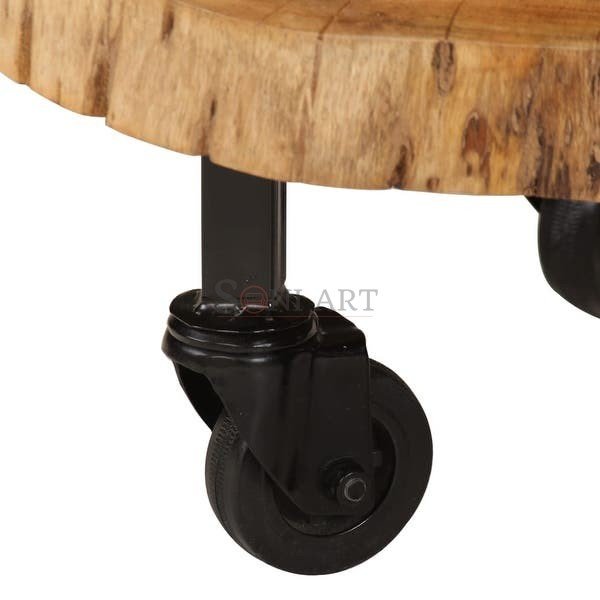 Orchard Rustic Acacia Wood Coffee Table with Wheels – Handcrafted Center Table on Castors | Soni Art