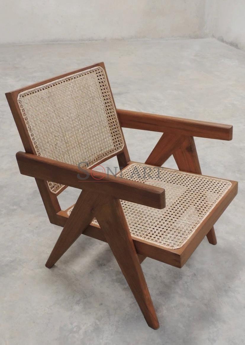Pierre Jeanneret Chandigarh Chair Teak Wood Cane Rattan Easy Chair