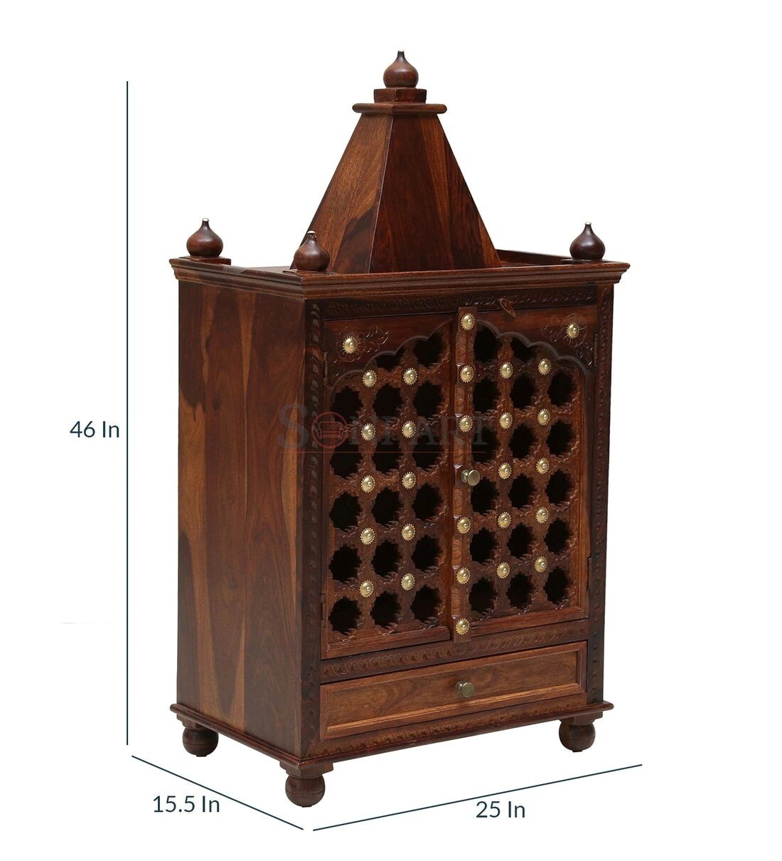 Soesto Solid Sheesham Wood Carved Puja Mandir Temple