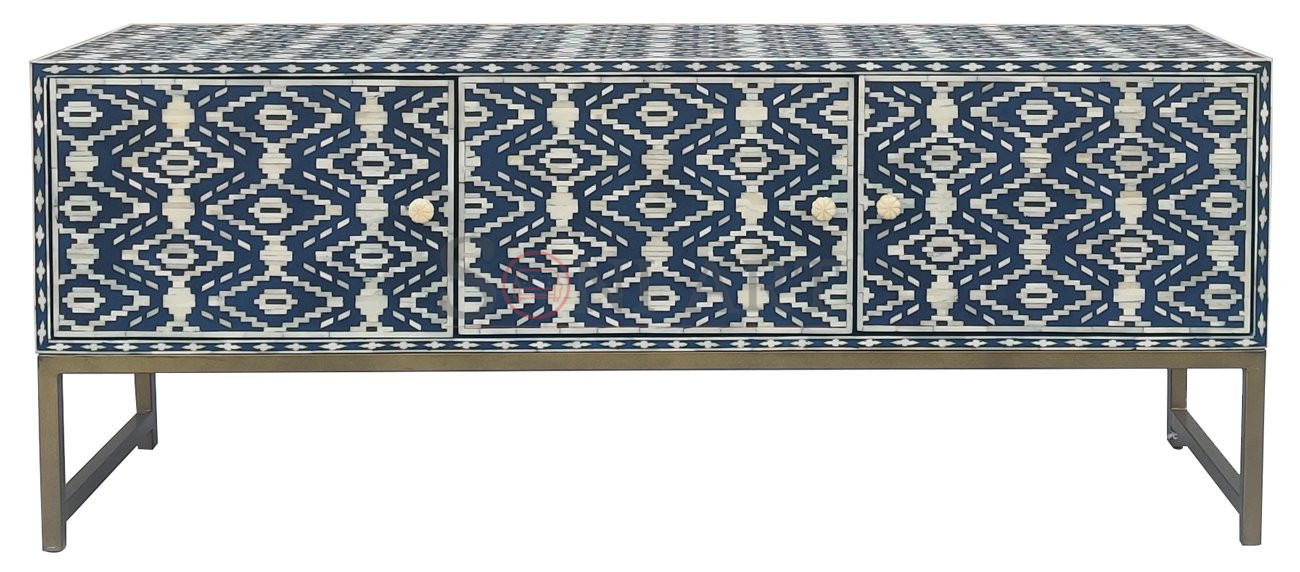Soni Art Indigo Maze Bone Inlay TV Cabinet