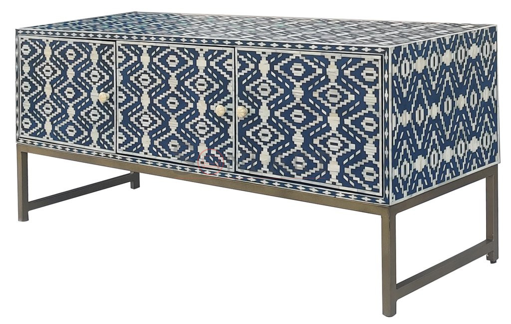 Perfect as a TV unit, media console, or bone inlay sideboard, the Indigo Maze Bone Inlay TV cabinet blends effortlessly into modern, bohemian, coastal, eclectic, and luxury interiors—making it ideal for living rooms, dining spaces, hallways, boutique hotels, and curated studio apartments.