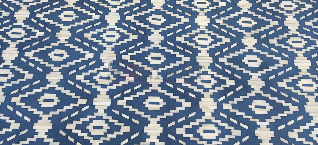 Introduce bold artistry and refined functionality into your living space with the Indigo Maze Bone Inlay TV Cabinet by Soni Art. Meticulously handcrafted by skilled artisans, this statement piece features a striking navy blue and white geometric bone inlay pattern, inspired by tribal, Aztec, and Moroccan design traditions.