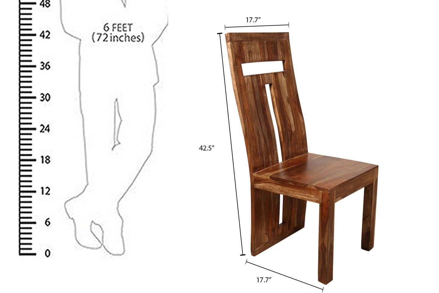 The wooden dining chair set includes two beautifully designed chairs, each measuring 18″ x 18″ x 42″ (LxWxH). The robust construction of the dining chairs ensures durability and stability, making them a reliable addition to your dining space.