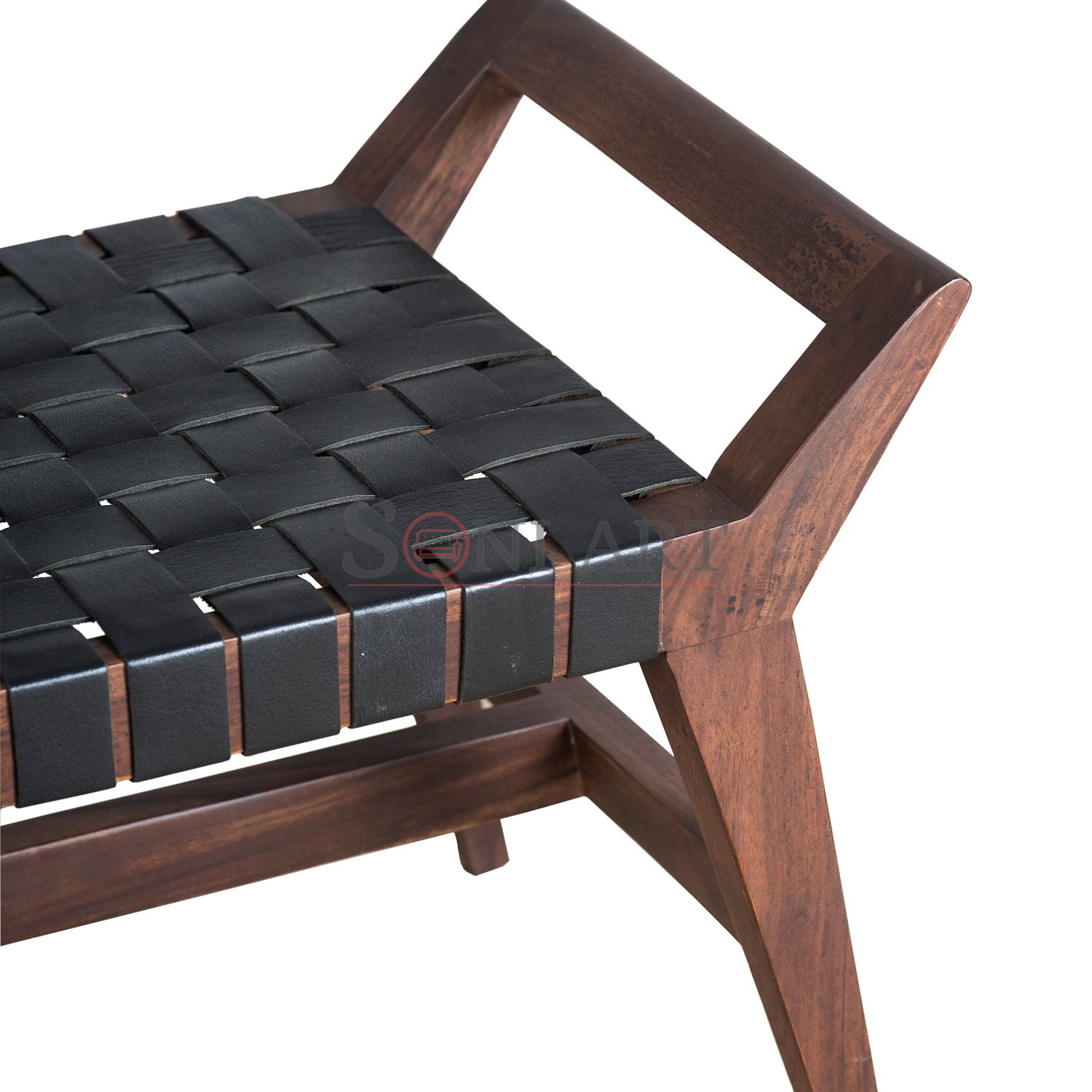 Redefine contemporary living with the Tressa Solid Wood Bench with Leather Strap by Soni Art, a statement piece that blends artisanal craftsmanship with modern sophistication. Handcrafted from premium solid wood and finished in a rich medium walnut tone, this bench brings warmth, character, and understated luxury to any interior. The sandblasted surface reveals subtle wood grains and textures, adding depth and a tactile appeal that elevates its visual presence.
