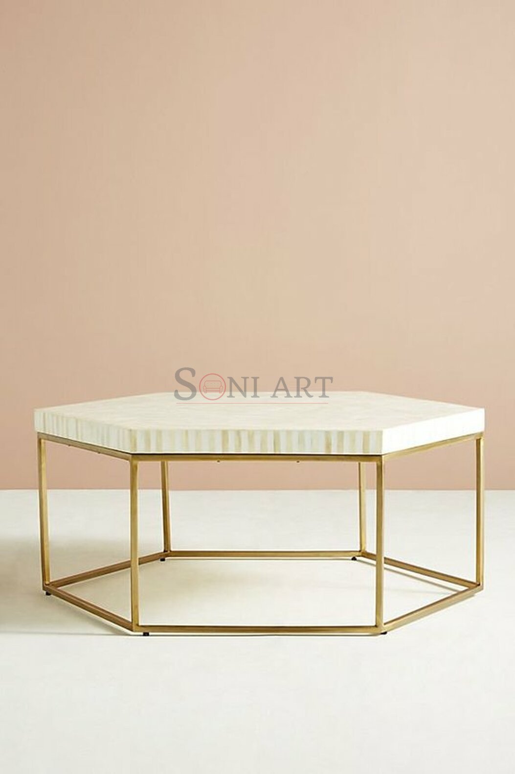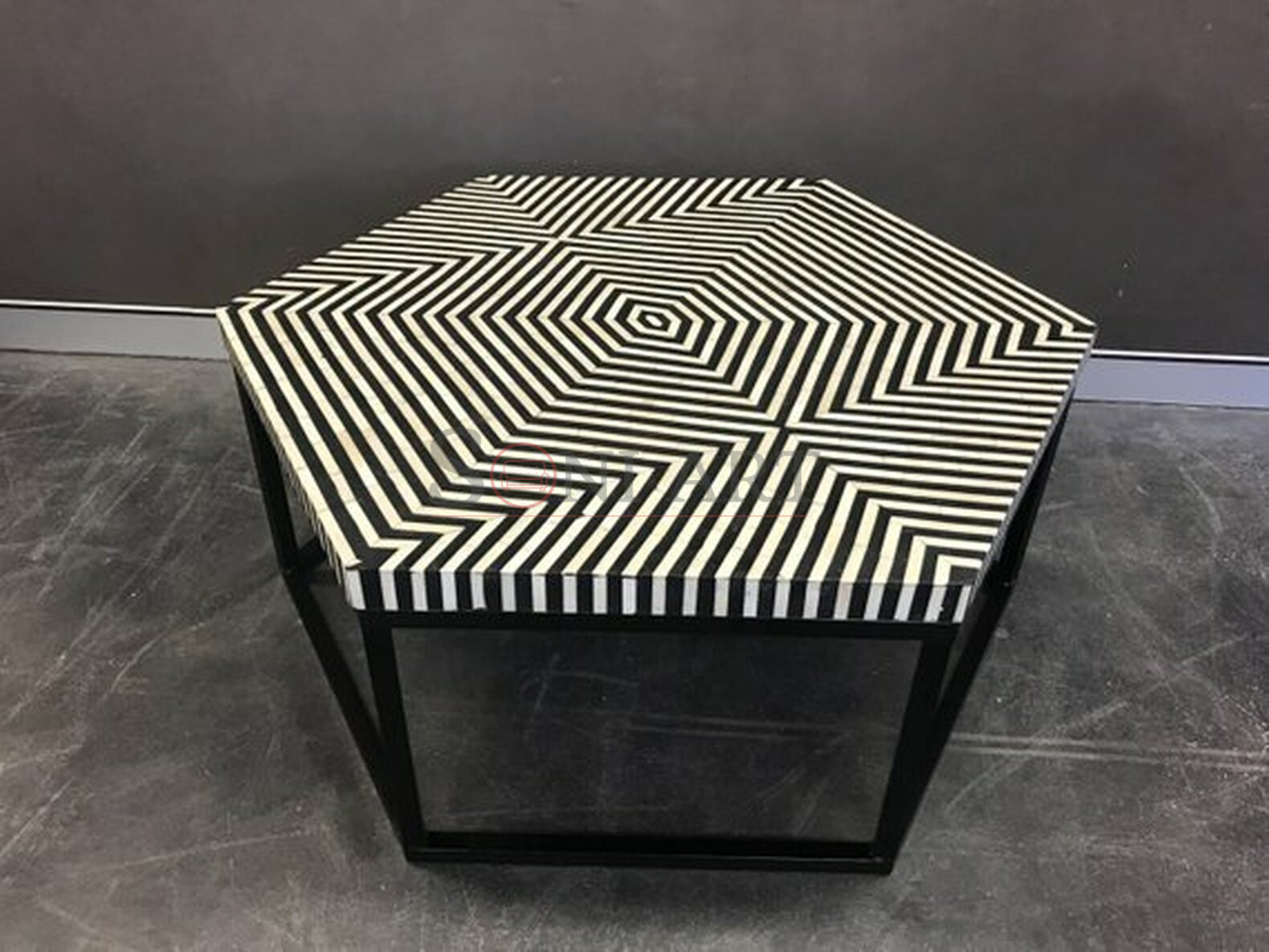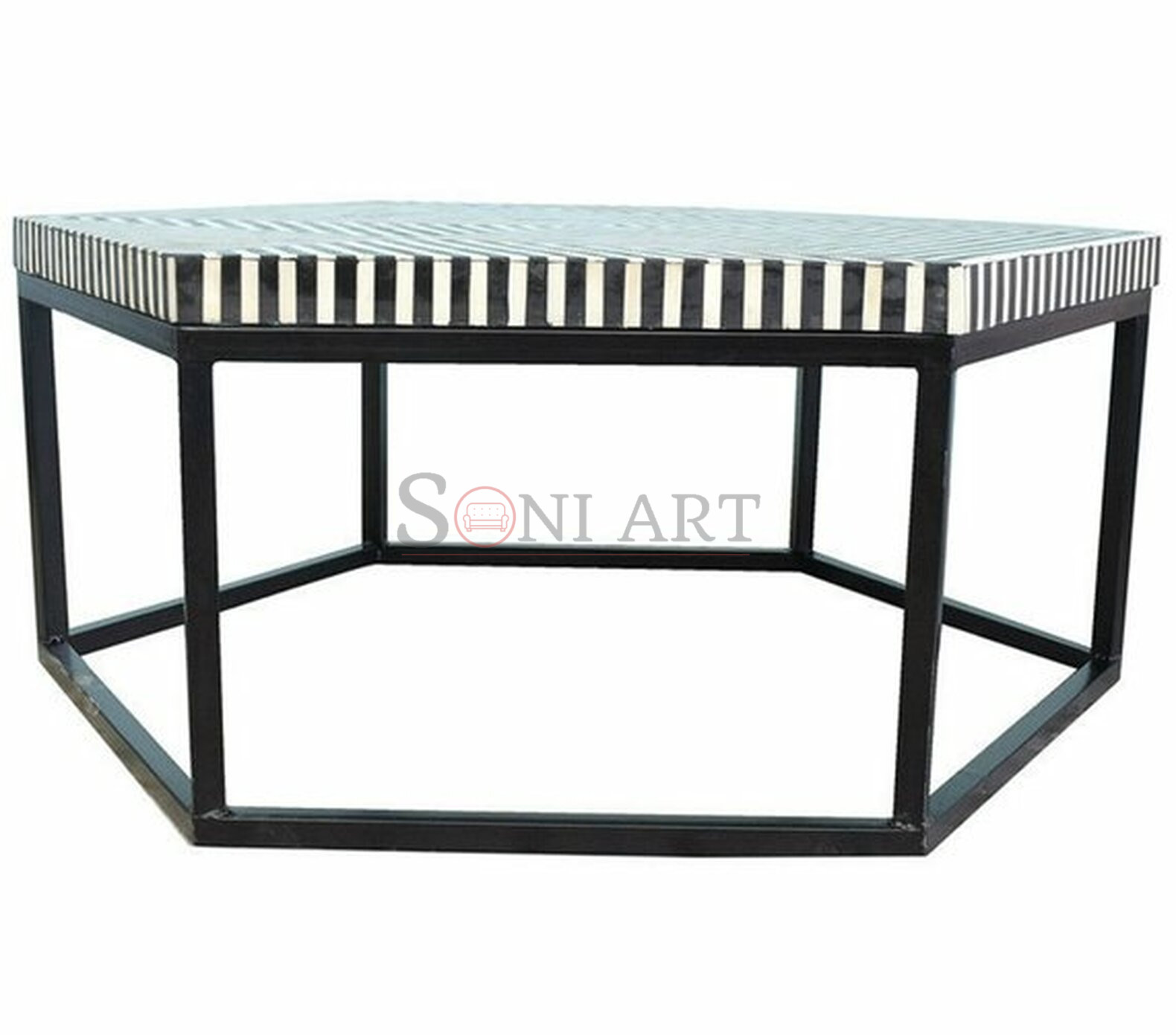 Make a powerful visual statement with the Vortex Hexagon Bone Inlay Center Table by Soni Art, a striking blend of optical geometry, handcrafted artistry, and modern design. Created to command attention, this hexagonal coffee table transforms your living room or hallway into a gallery-inspired space.