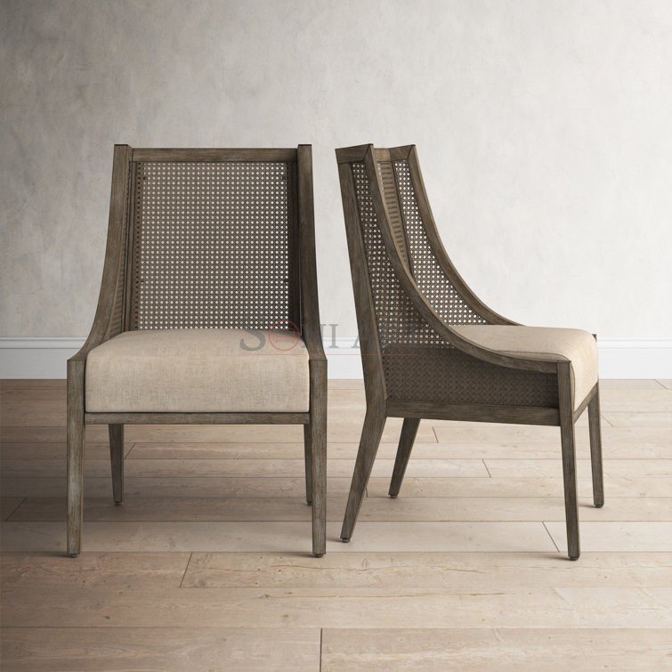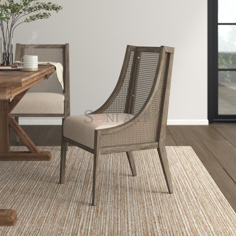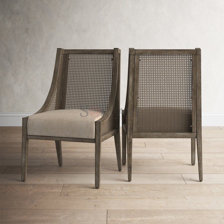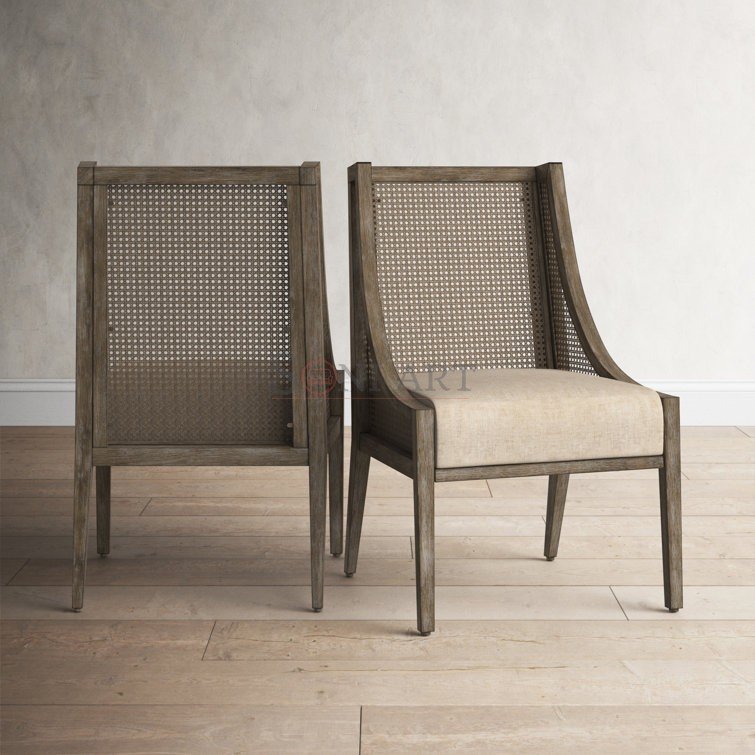 Wingback Back Set of 2 Woven Chairs with Upholstered Cushions – Solid Wood | Soni Art