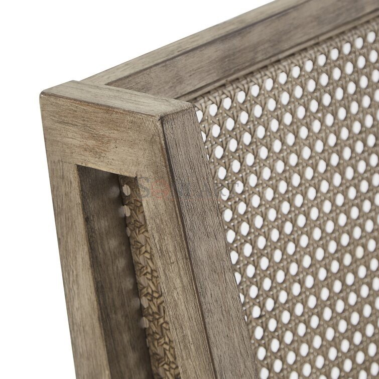 Each solid wood chair is expertly crafted with a solid mango wood frame, finished in an antique grey oak tone that enhances its timeless appeal. The gracefully contoured wingback silhouette offers both visual presence and ergonomic support, making these chairs as inviting as they are stylish. The highlight of the design is the hand-woven rattan backrest, which introduces breathable comfort and natural texture while celebrating traditional craftsmanship.